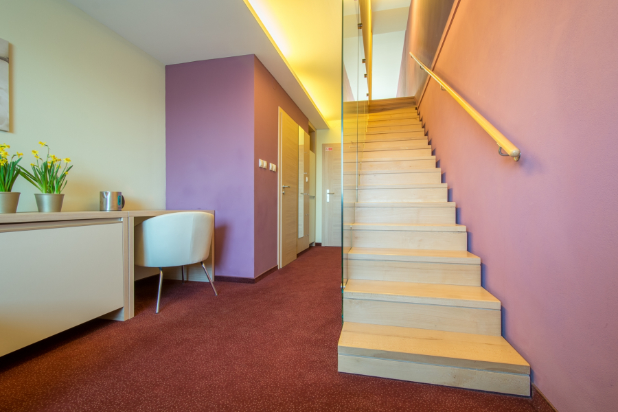 Unikátne mezonetové apartmány sú umiestnené na najvyššom poschodí nášho hotela. Každý apartmán má mierne odlišnú dispozíciu, ale v každom nájdete obývaciu časť s rozkladacím gaučom vhodným pre 1-2 deti max. do 12 rokov (spacia plocha po rozložení na dve prístelky je 120x170 cm) a spálňu s manželskou posteľou. Z dolného poschodia je výhľad do doliny, zatiaľ čo z vrchného poschodia máte nádherný panoramatický výhľad na Tatry. Niektoré mezonetové apartmány disponujú aj balkónom.