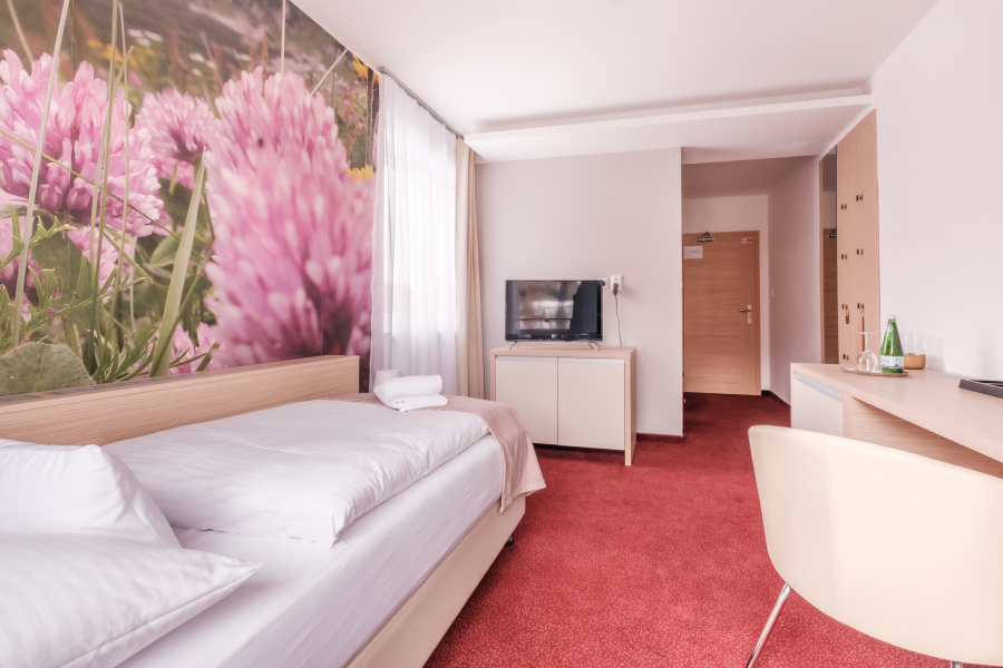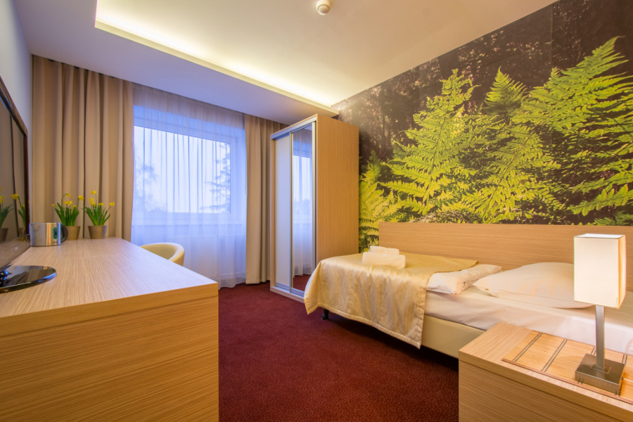 Jednolôžková izba superior predstavuje vyšší štandard jednolôžkových izieb v našom hoteli. Je to štýlovo zariadená izba s veľkoplošnou tapetou umiestnená na štvrtom alebo piatom poschodí hotela s výhľadom do doliny, bez balkóna.
