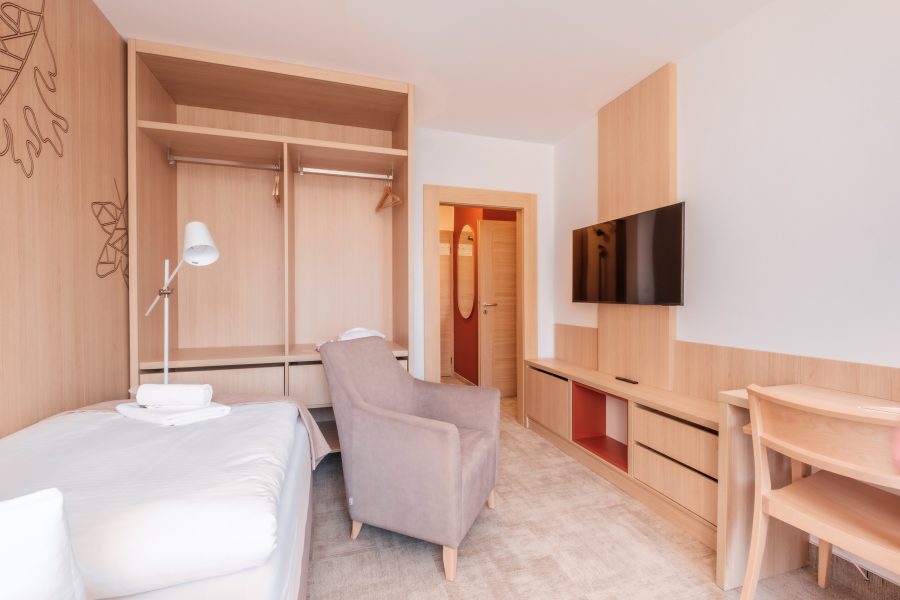 Trojlôžková izba family plus je ideálna pre trojčlenné rodiny. Pozostáva z dvoch prepojených izieb – dvojlôžkovej a jednolôžkovej. Každá izba má samostatnú kúpeľňu so sprchovým kútom alebo vaňou a WC, dostatok úložného priestoru a samostatnú LCD TV. Každá Family izba má chladničku a rýchlovarnú kanvicu so setom kávy a čaju. Potešením je aj výhľad na Tatry a balkón.