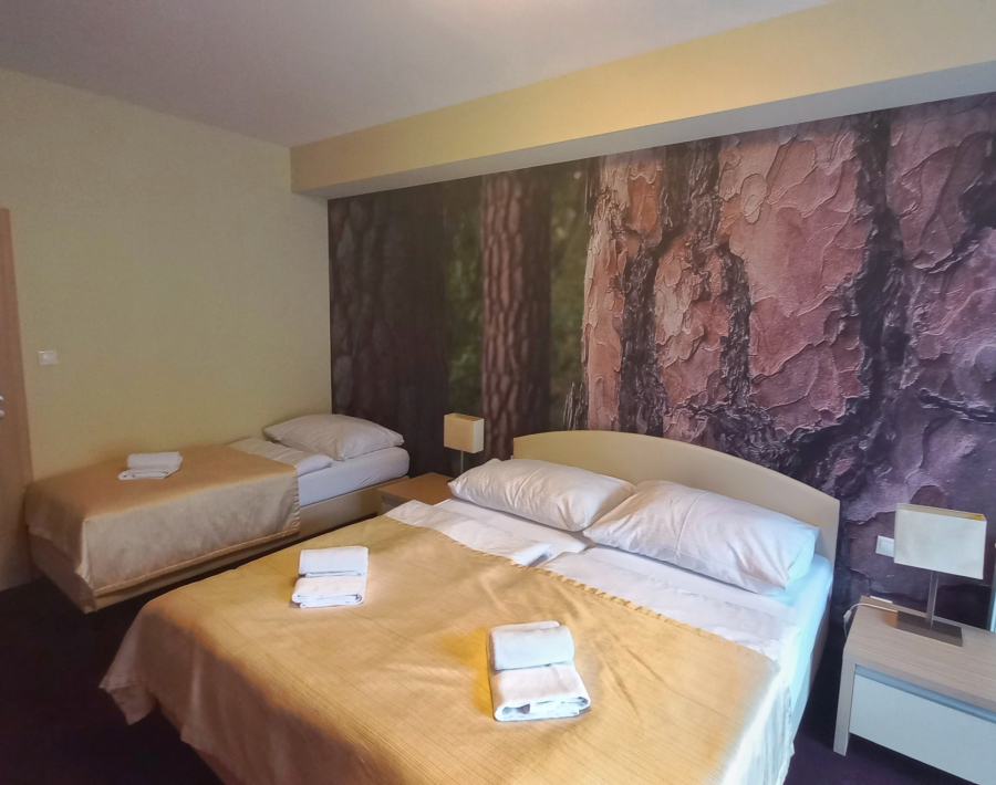 - Spálňa s manželskou posteľou 180x200 cm a samostatnou posteľou 90x200 cm